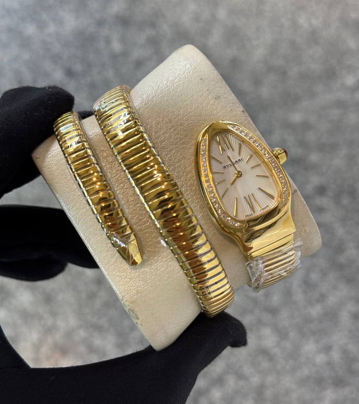 ساعت مچی زنانه بولگاری ماری سه دور مسترکوالیتی درجه یک طلایی با صفحه سفید