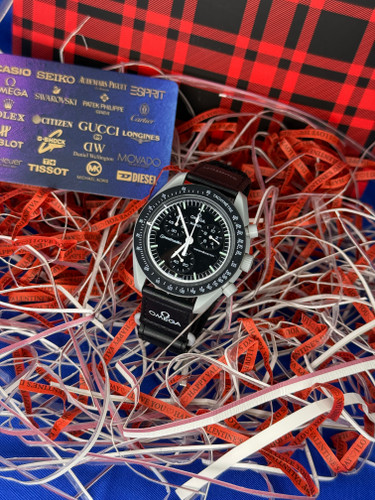ساعت امگا سواچ مشکی قاب سرامیکی بند رابر